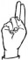 На ћирилици написано ИВА МЕЋАВА састоји се из 9 слова [?]. Исписано ћириличном једноручном азбуком за глувонеме:
